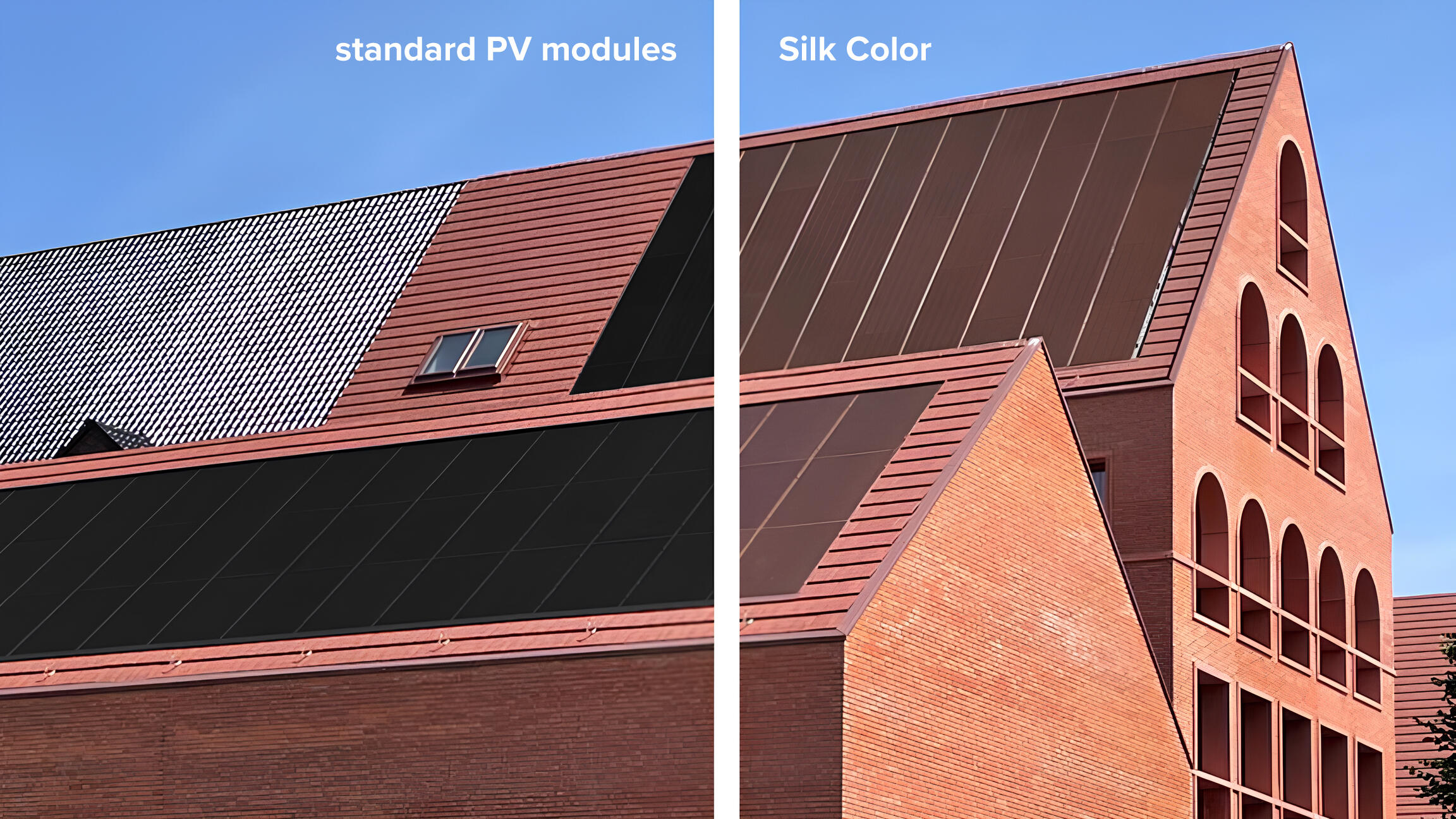 | AESTHETICS | A uniform, modern look, but often too “technical” for historic or landscape-sensitive contexts. High visual impact. | Precise, stable chromatics. Colours designed to blend with roofs and façades. A premium aesthetic that enhances the building. |