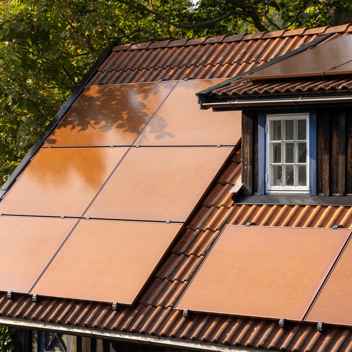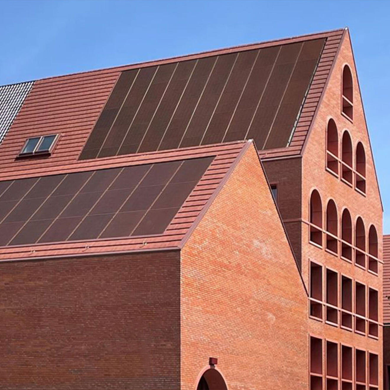 • 19 terracotta-coloured modules, chosen to blend with the original tiles and roof aesthetics.